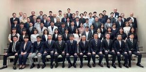 市内のホテルのパーティー会場でグループの全社員が参加して経営計画発表会を開催いたしました。